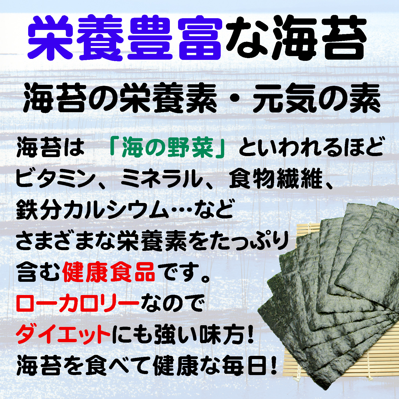 色艶・香り舞う・磯の風味に優れた 江戸前千葉海苔、手巻すし、巻すしに